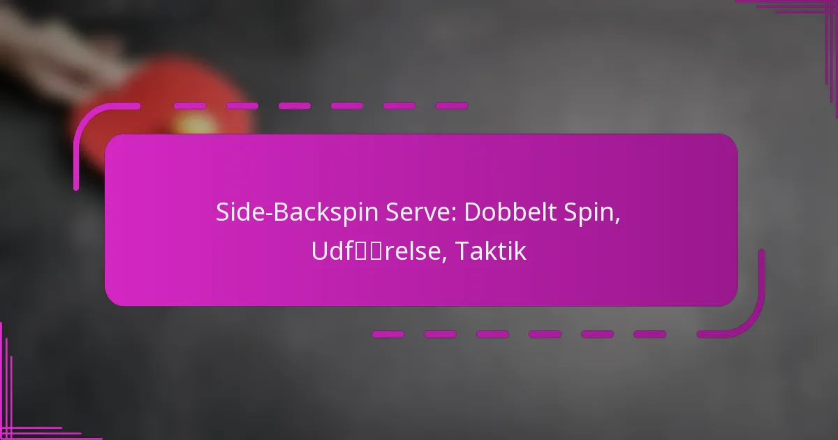 Side-backspin serven er en specialiseret teknik i sportsgrene som bordtennis og tennis, der kombinerer sidespin og backspin, hvilket resulterer i en udfordrende boldbane og hop for modstanderne. For at udføre denne serve effektivt skal spillere fokusere på deres greb, stance og racketvinkel samt mestre kastet og follow-through. Denne serve forbedrer ikke kun den taktiske spil ved at forstyrre modstanderens rytme, men skaber også muligheder for serveren til at tage kontrol over pointet.